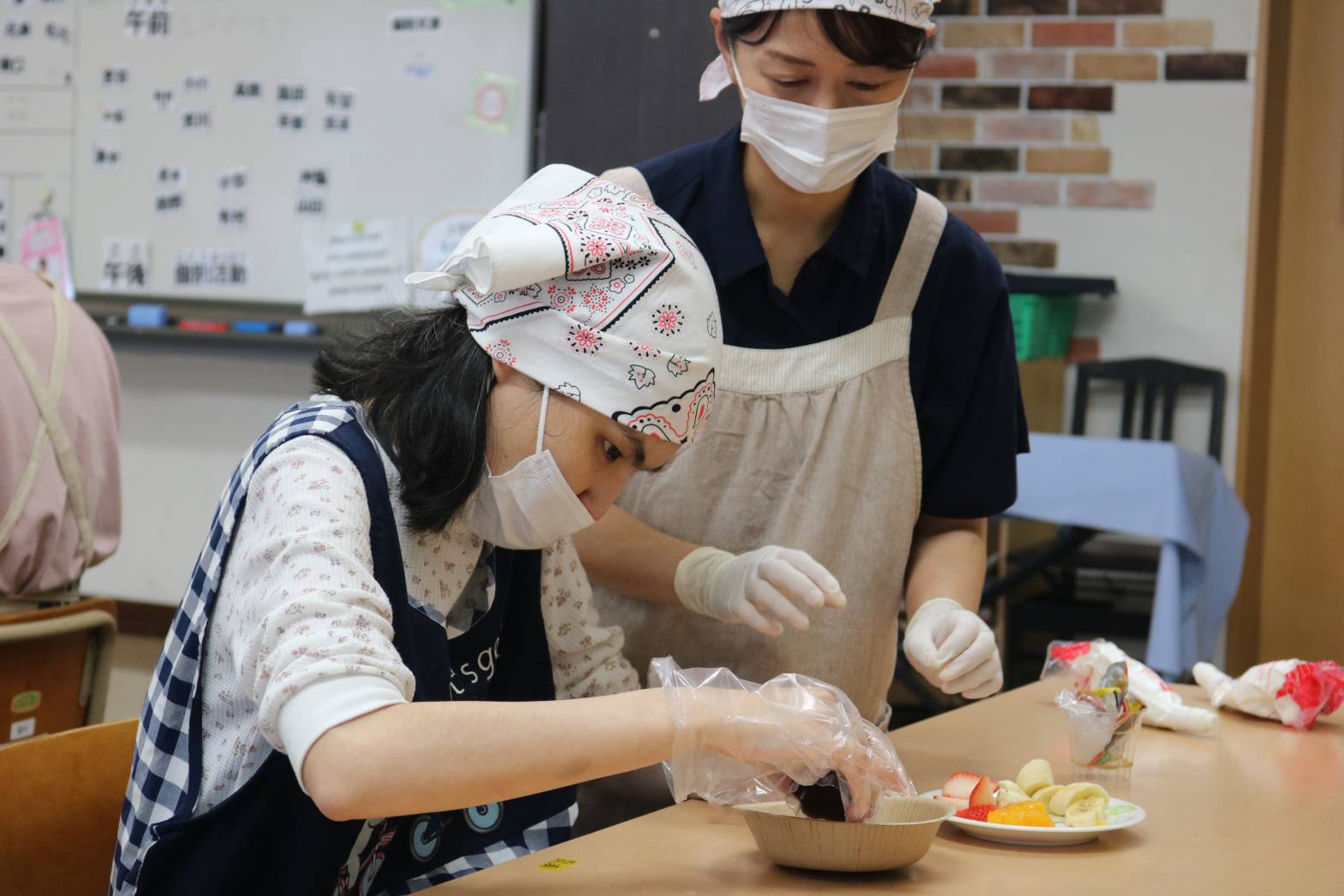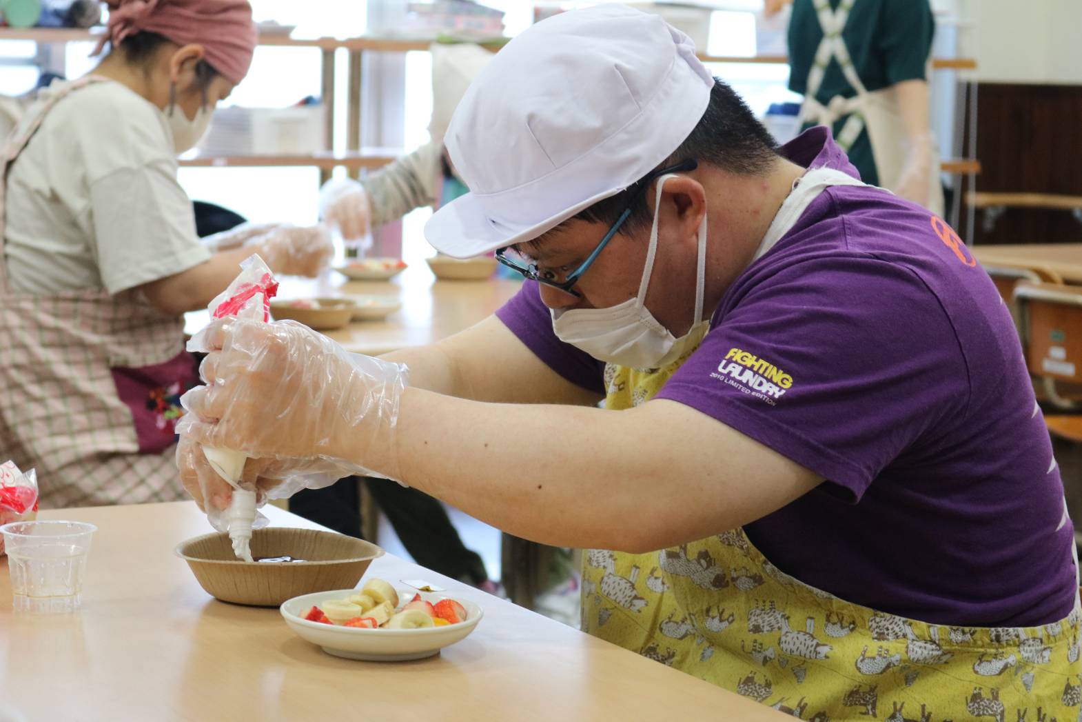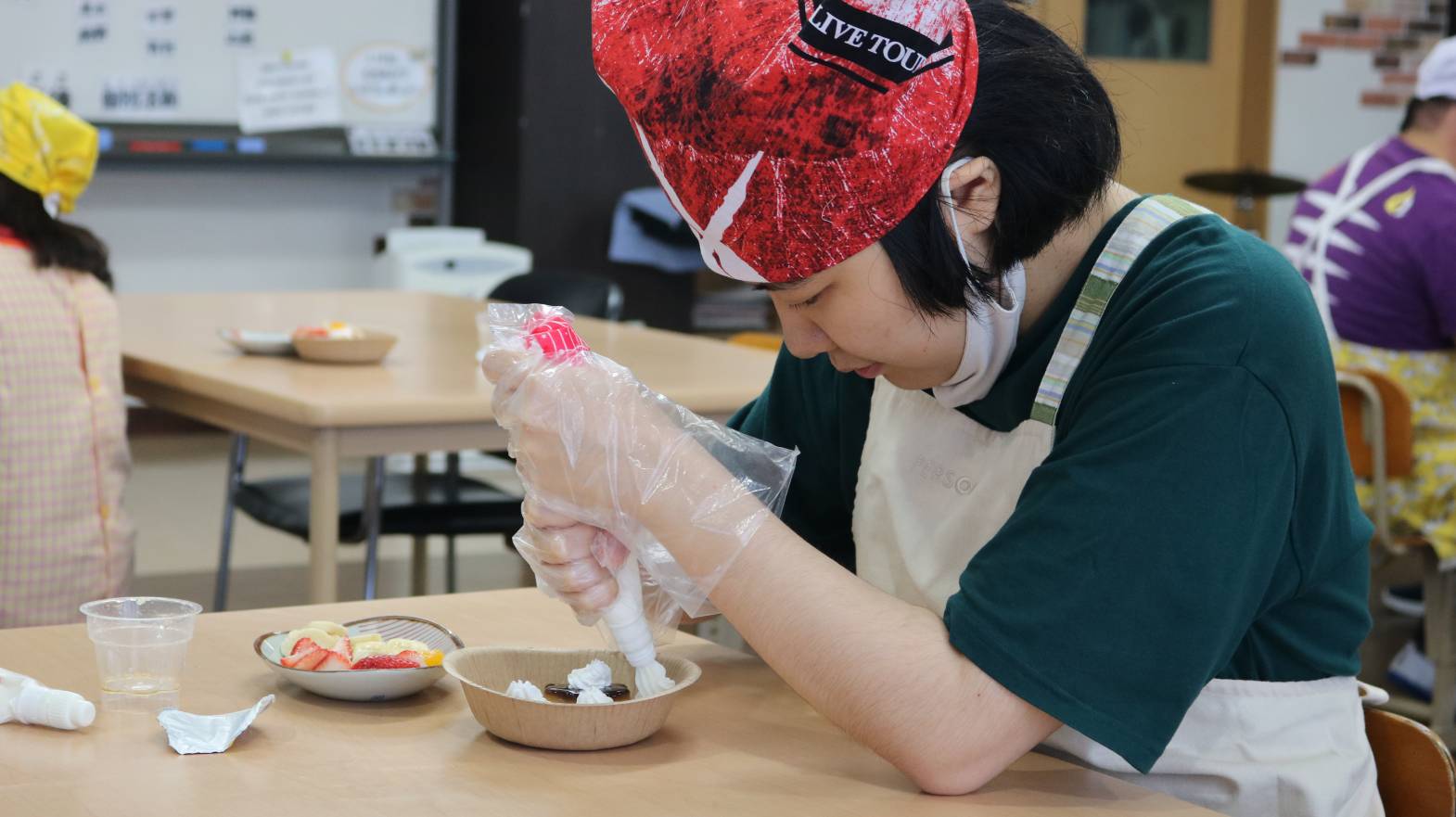 5月17日㈯に行われた調理活動ではプリンアラモード作りをしました。 5年ぶりの調理活動に前日からみなさんワクワクされていました。 まずは、フルーツを切って… 次にクリームを絞って盛り付けです。 出来上がったプリンアラモードは給食の時にいただきました。 久しぶりの調理活動は大成功で、盛り上がっていたみなさんです!