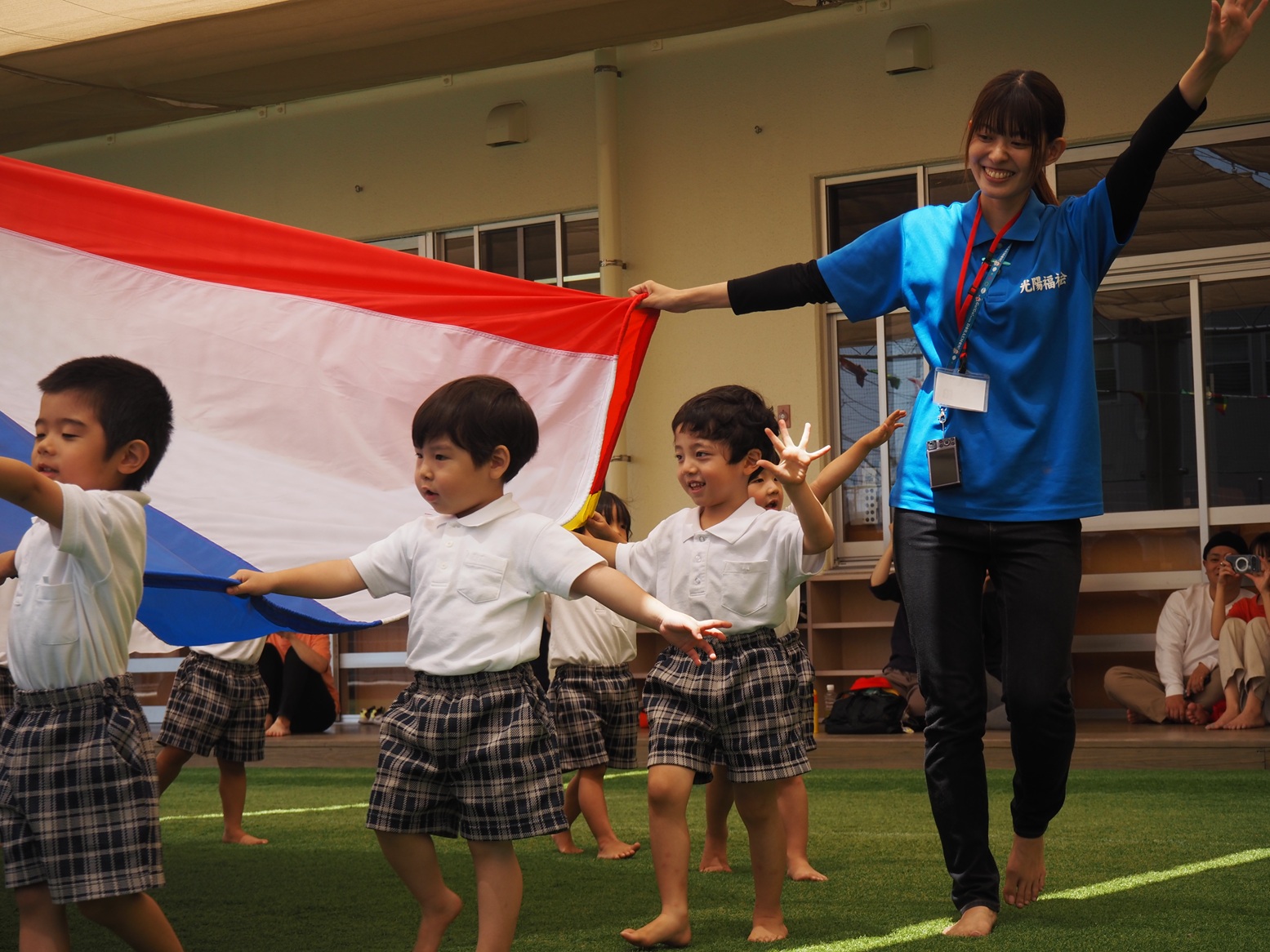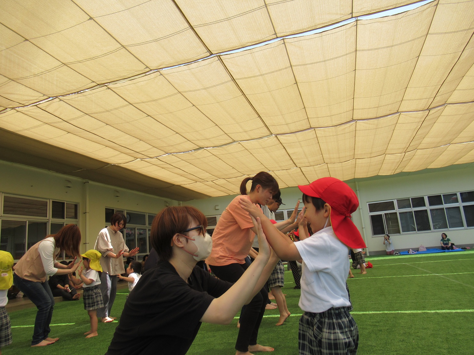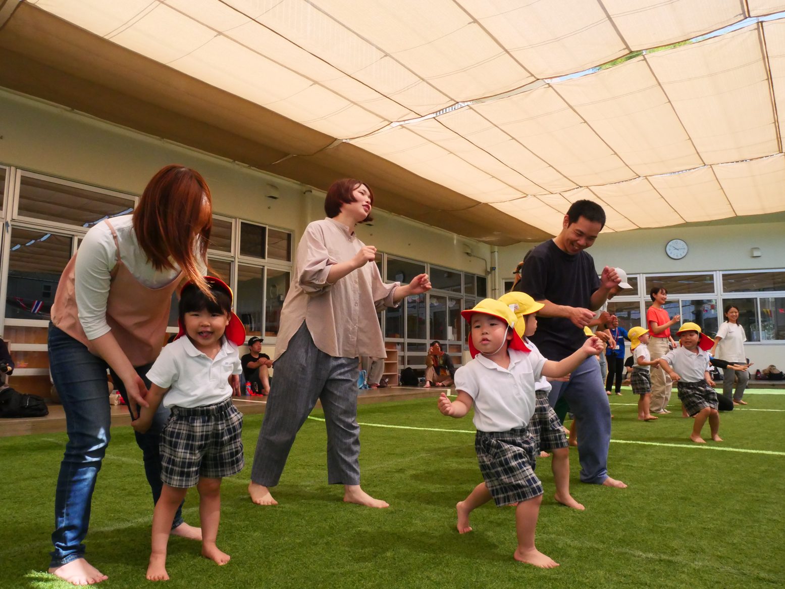 閉会式では、「人間っていいな」の体操でクマポーズをしたり、保護者の方との最後のスキンシップを楽しむ子どもたち。満足げな笑顔がたくさん見られました!