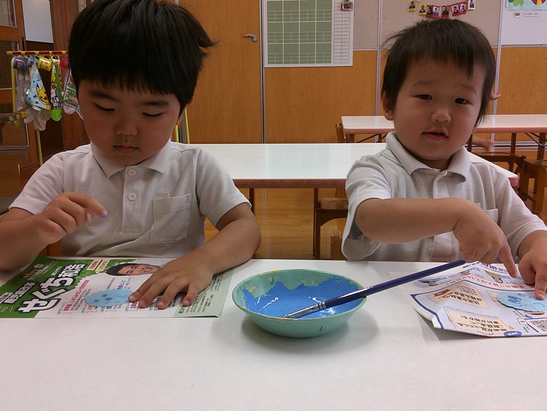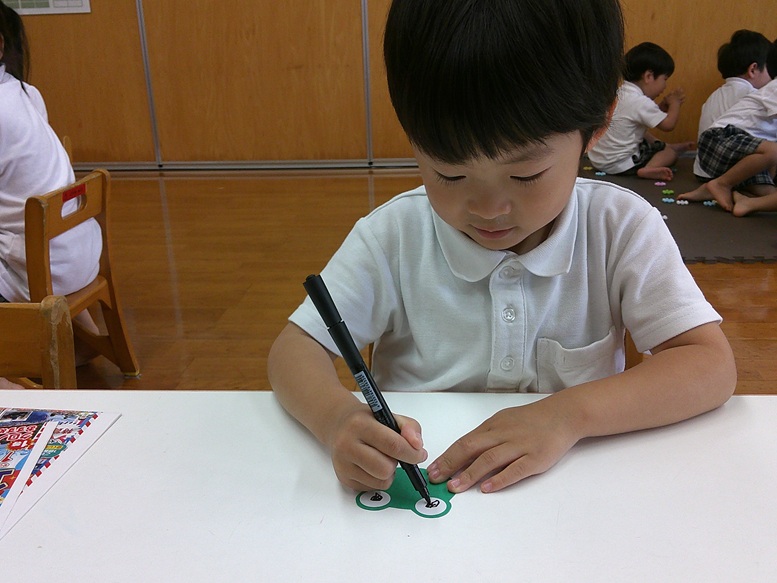 「笑ってるカエルさんにする!」「これ持って帰ってプレゼントするんだ!喜んでくれるかな。」と言いながら作る姿が見られました。
