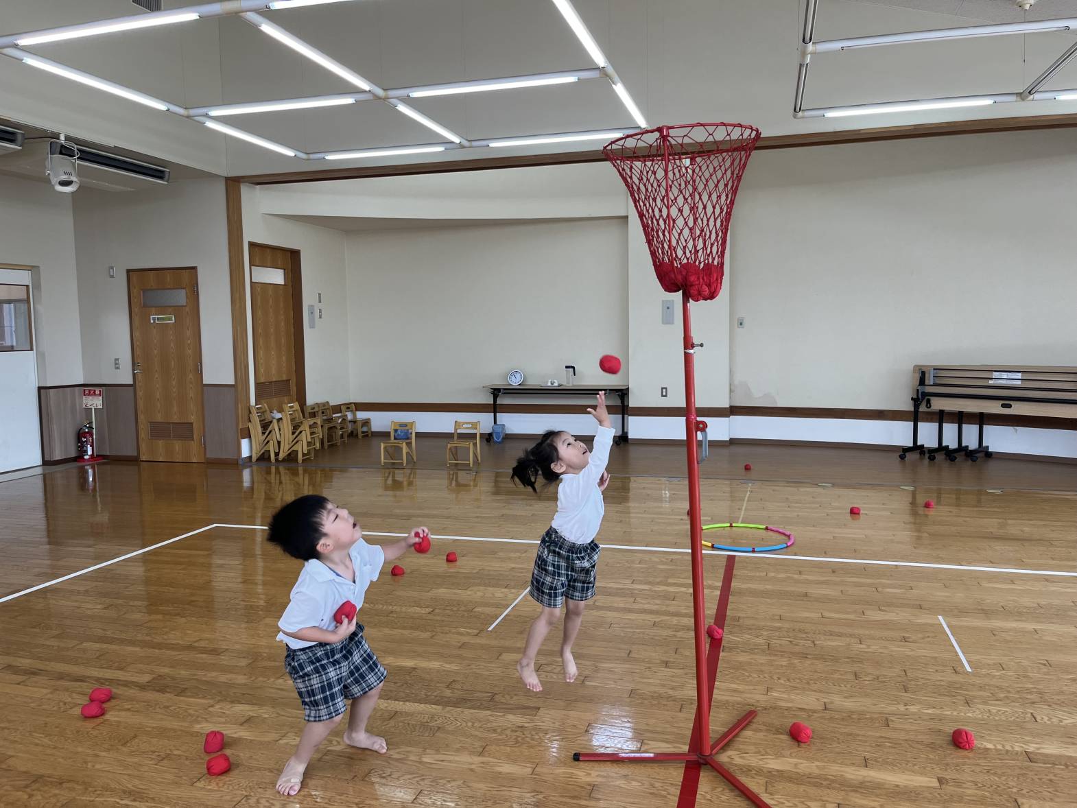 籠の高さから、「難しい。」と声に出す様子が見られましたが、「後一個入れたい!」と何度も挑戦する姿が見られました!