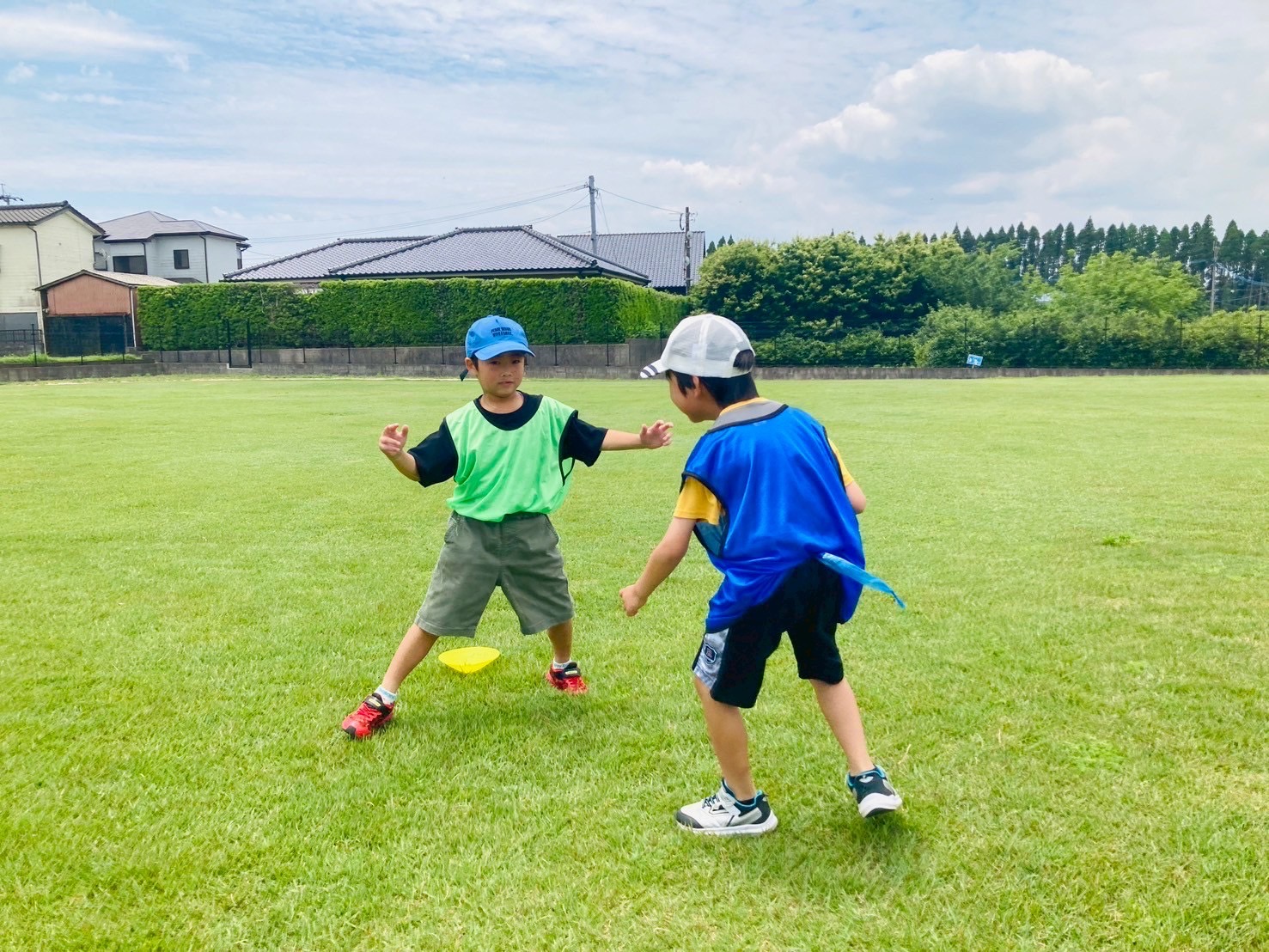 「挟みうちしよう!」「たくさんしっぽ取れた!」とお友だちと協力したり、時間いっぱいまで走って逃げたりする子どもたちでした☆