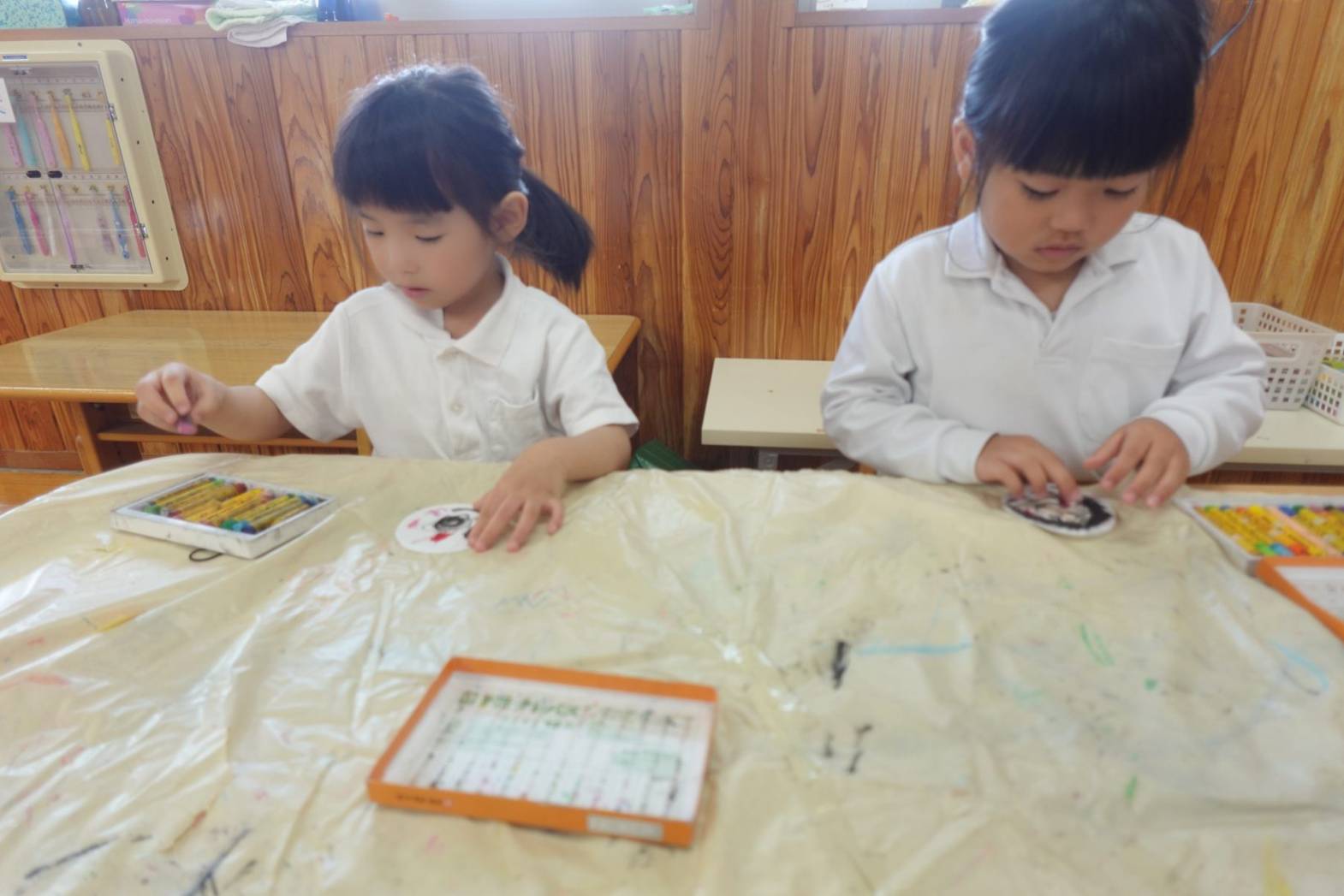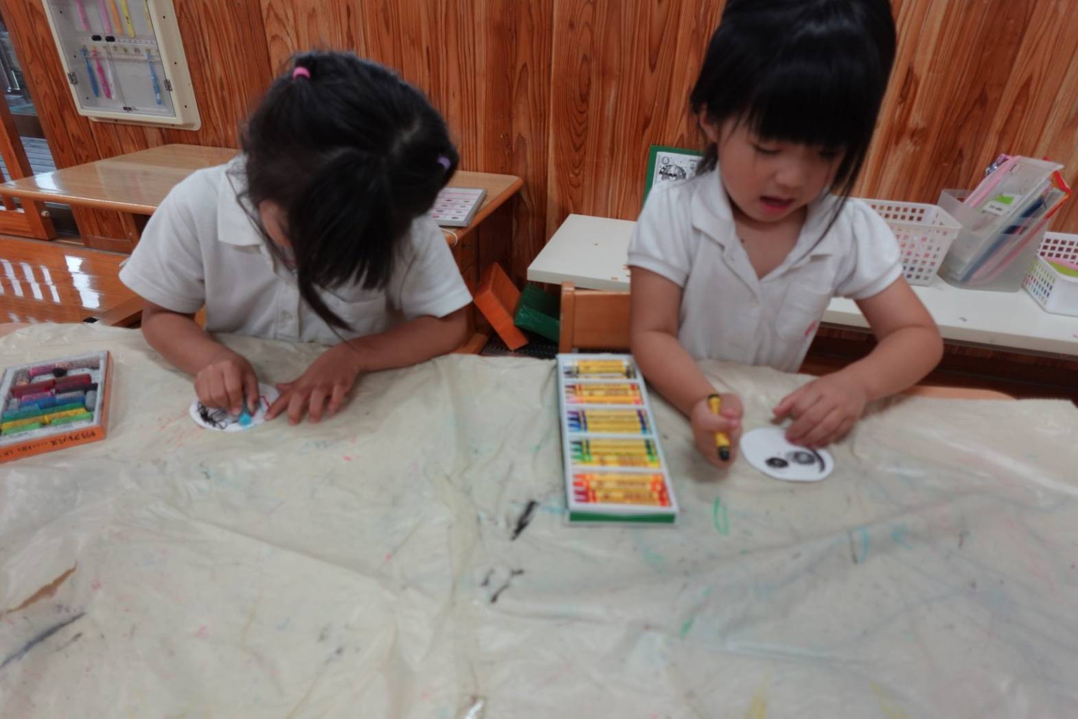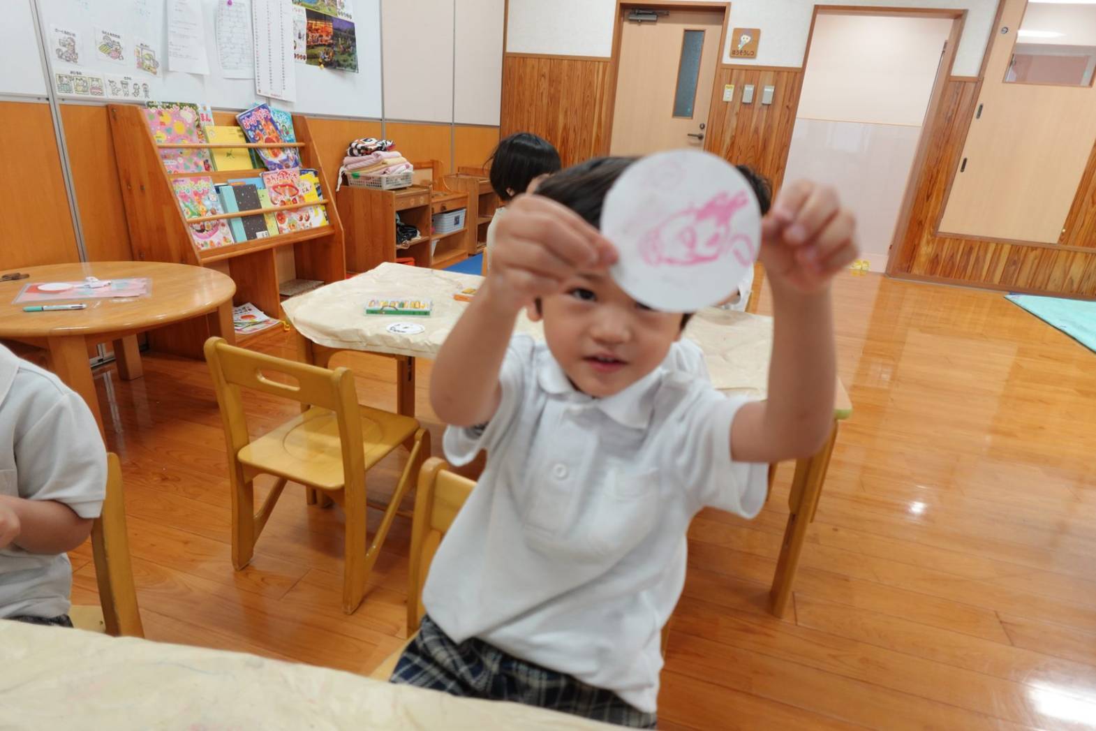 今回父の日のプレゼントで、ひまわりメダルの製作をしました。 まずはお父さんの顔をクレヨンでかきかき。 ハサミも使って約束事を守りながら、上手に紙を切ることができました。 完成した後は「パパ喜んでくれるかなー」「渡すの楽しみ!」と、ご機嫌な子どもたちでした。 本日作品を持ち帰りますので、お家でもご鑑賞下さい♪