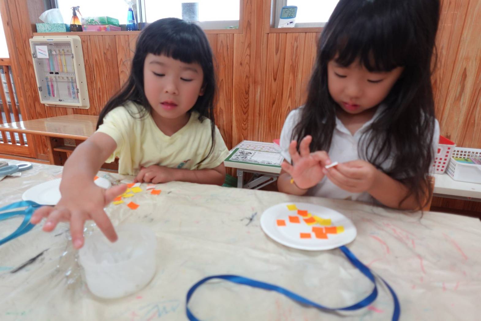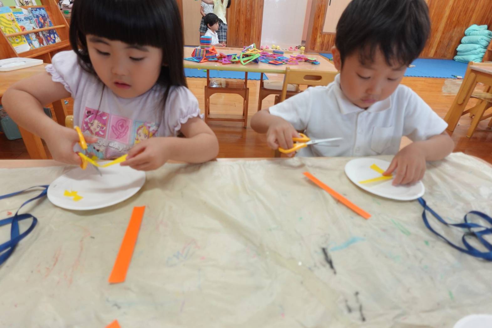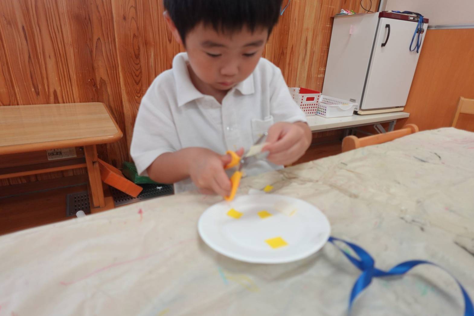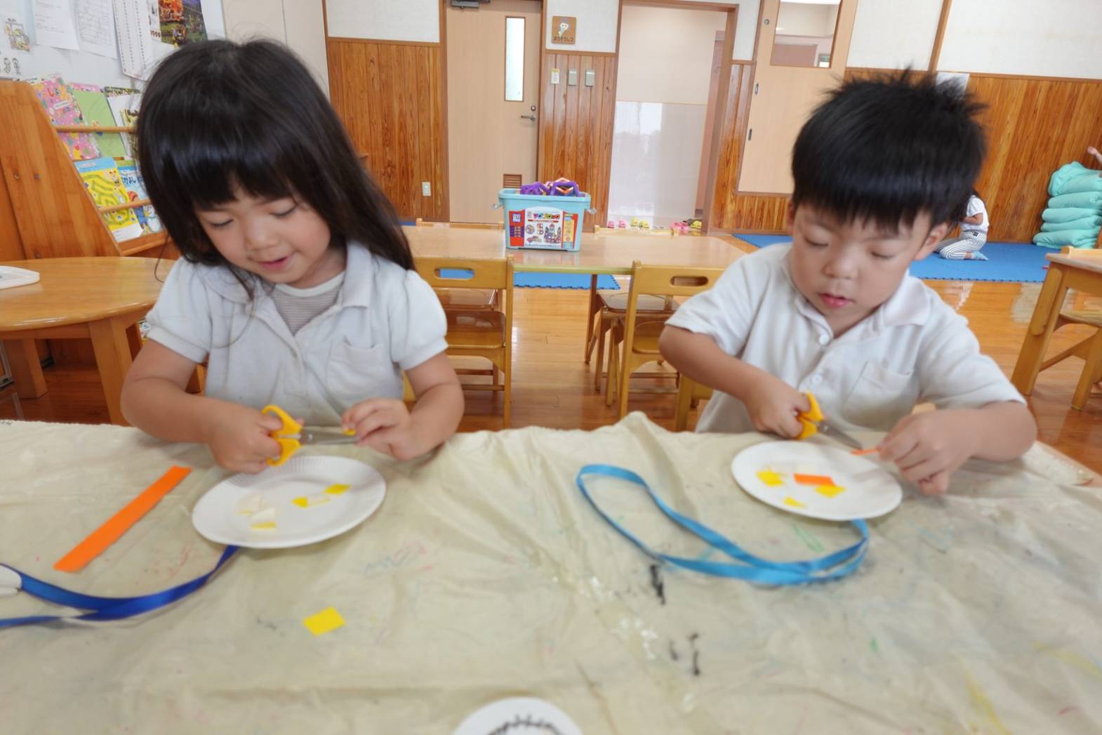 今回父の日のプレゼントで、ひまわりメダルの製作をしました。 まずはお父さんの顔をクレヨンでかきかき。 ハサミも使って約束事を守りながら、上手に紙を切ることができました。 完成した後は「パパ喜んでくれるかなー」「渡すの楽しみ!」と、ご機嫌な子どもたちでした。 本日作品を持ち帰りますので、お家でもご鑑賞下さい♪
