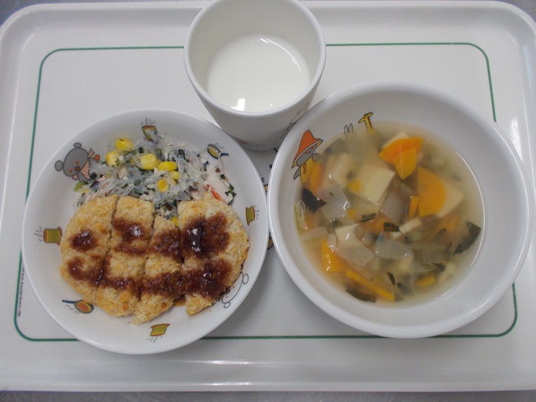 9月22日(月)から9月27日(土)までの給食献立写真・離乳食提供量と写真の一例です。