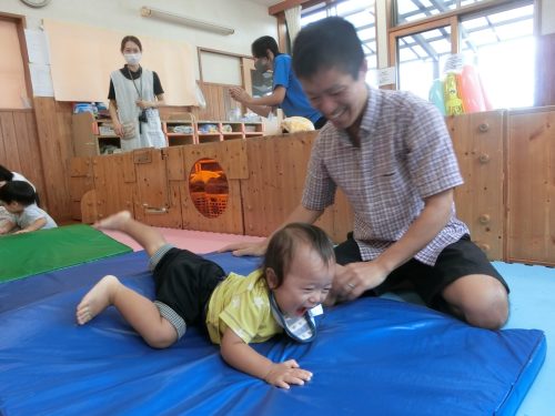 活動では、保護者の方も一緒に保育室に入って活動を行います。
