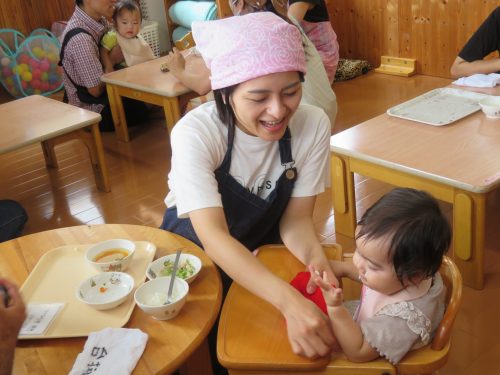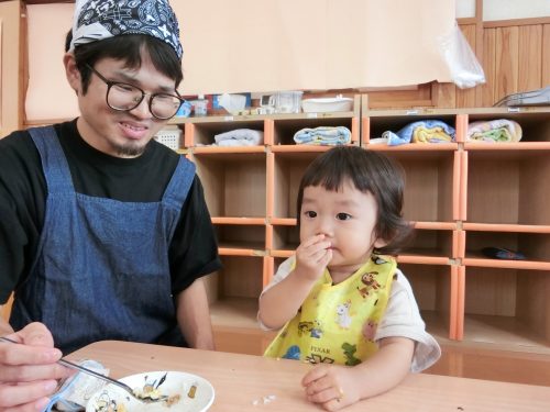 少しメニューが苦手な物があったり、いつもと異なる環境だったりすることで完食は難しかったですが今後も保育園での様子を伝えながら給食に取り組んでい行けたらと思います。