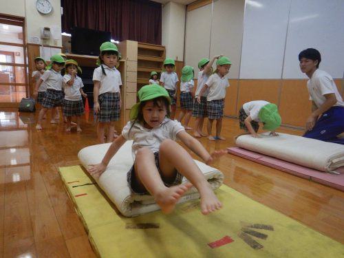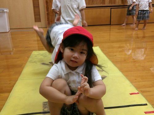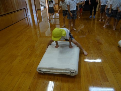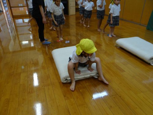 「先生できたよ。」「前回り楽しいね!」と、笑顔で前転をしていく子どもたち。