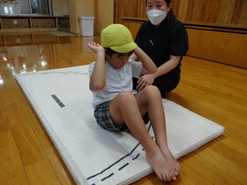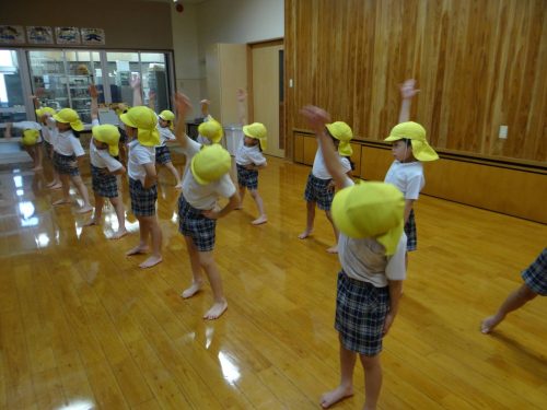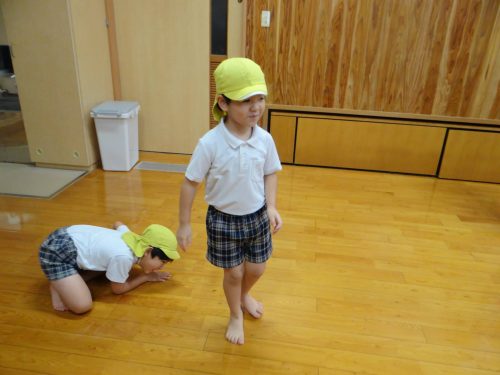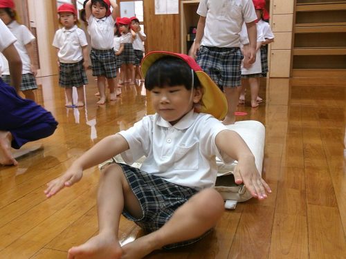 「お腹つけられたよ。」「1,2、3!」と、元気いっぱい取り組む姿が見られました。