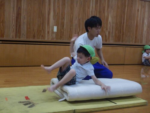 少し高くなったマットの上から前転に挑戦することができ、大満足な様子のりす組さんです。