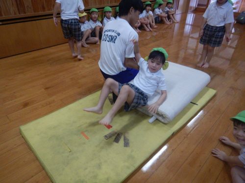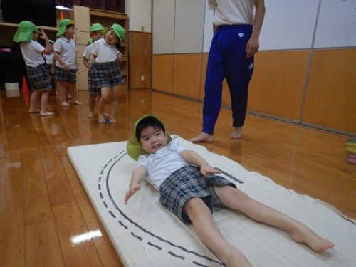 「お腹つけられたよ。」「1,2、3!」と、元気いっぱい取り組む姿が見られました。