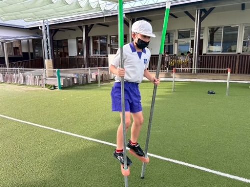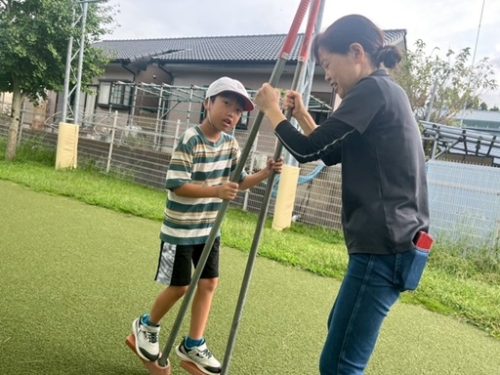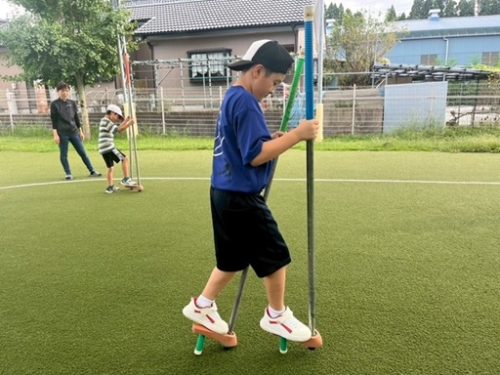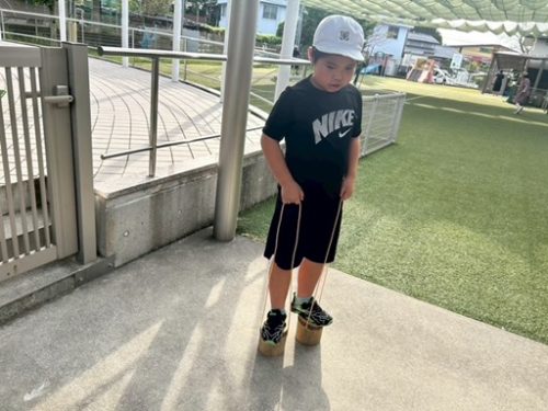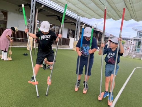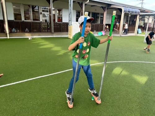 今回は、竹馬に取り組みました。 両手でしっかりと棒を握り、バランスを取りながら慎重に前に出る子どもたち! バランスを取ることが難しいときは、職員が手添えを行いながら一緒に挑戦してみました。 慣れてくると、お友だち同士でアドバイスをしたり、何秒乗れるか競い合いながら、時間いっぱい竹馬に取り組むことができました。 次回の竹馬の活動では、「高い竹馬にも乗ってみたい!」と目標を立てる姿も見られましたよ★