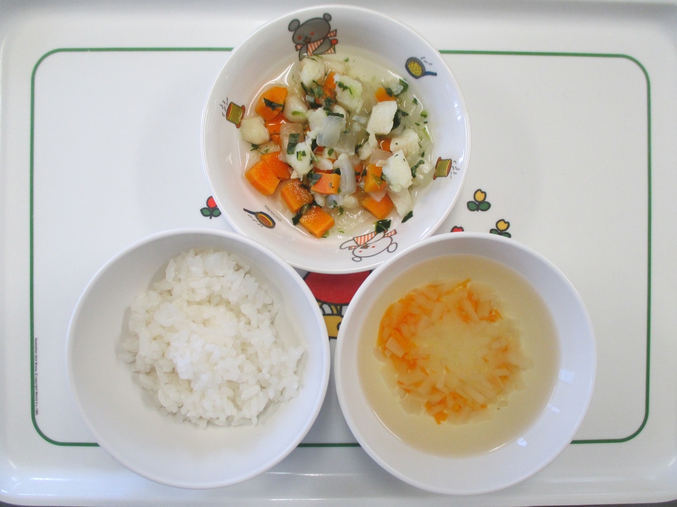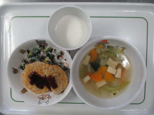 9月22日(月)から9月27日(土)までの給食献立写真・離乳食提供量と写真の一例です。