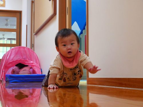 歩くことが難しい子どもたちはハイハイで参戦!