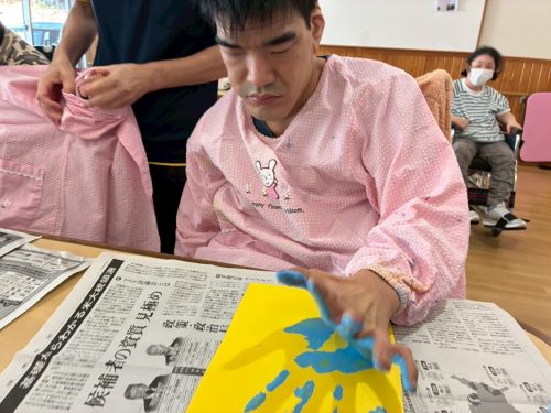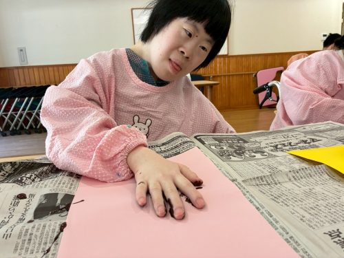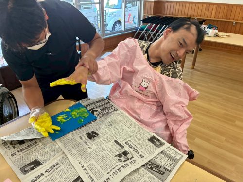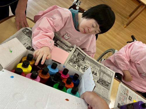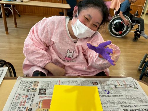 今日の創作活動は、ハロウィンパーティーに向けて飾り作りを行いました。 掌に絵の具を付けて、手形の模様を作りました。 皆さん、好きな色で模様をつけていましたが、これがどんな作品に変わるのか楽しみですね♪ これからハロウィンに向けて、皆さんと一緒に楽しみながら準備をしていきたいと思います!