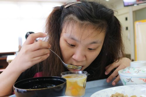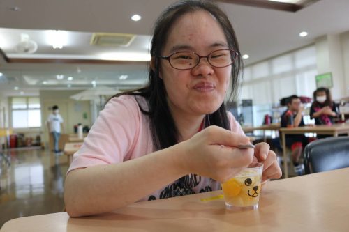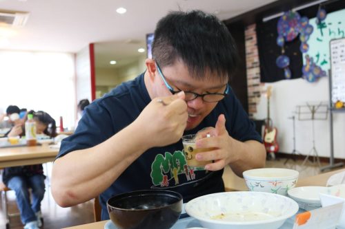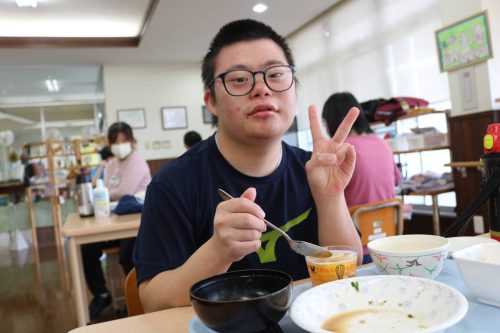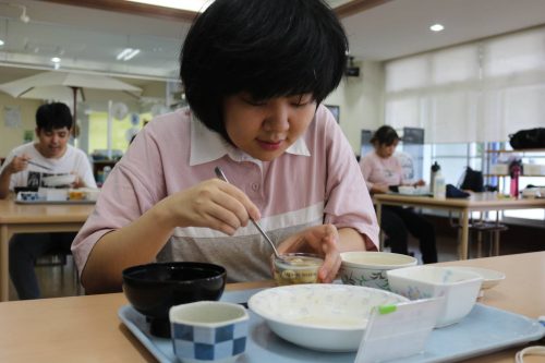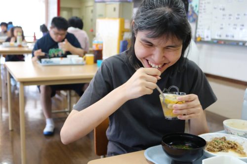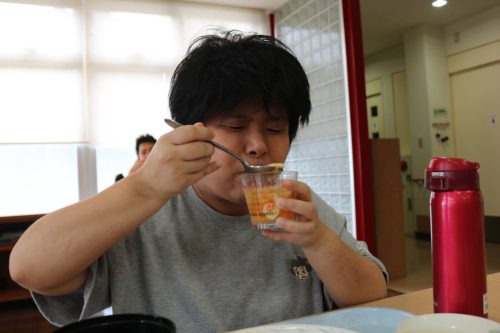 完成したフルーツポンチは、昼食の際に一緒に食べました。