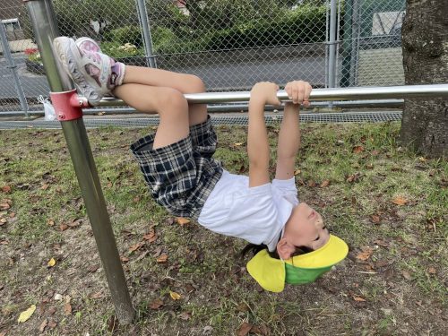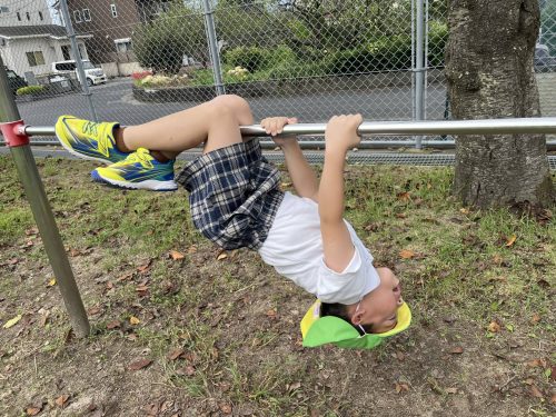 今回は、体力向上や鉄棒で様々な技の習得を目的として、さしきばるちびっこ広場に行きました。