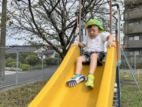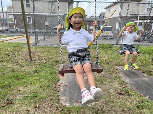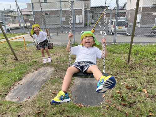 最後の自由時間では、滑り台やブランコに取り組んでいます。