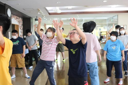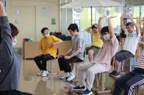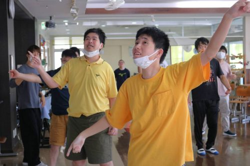 「怪獣の花唄」「ツバメ」の曲あわせて有酸素ダンスを行いました。