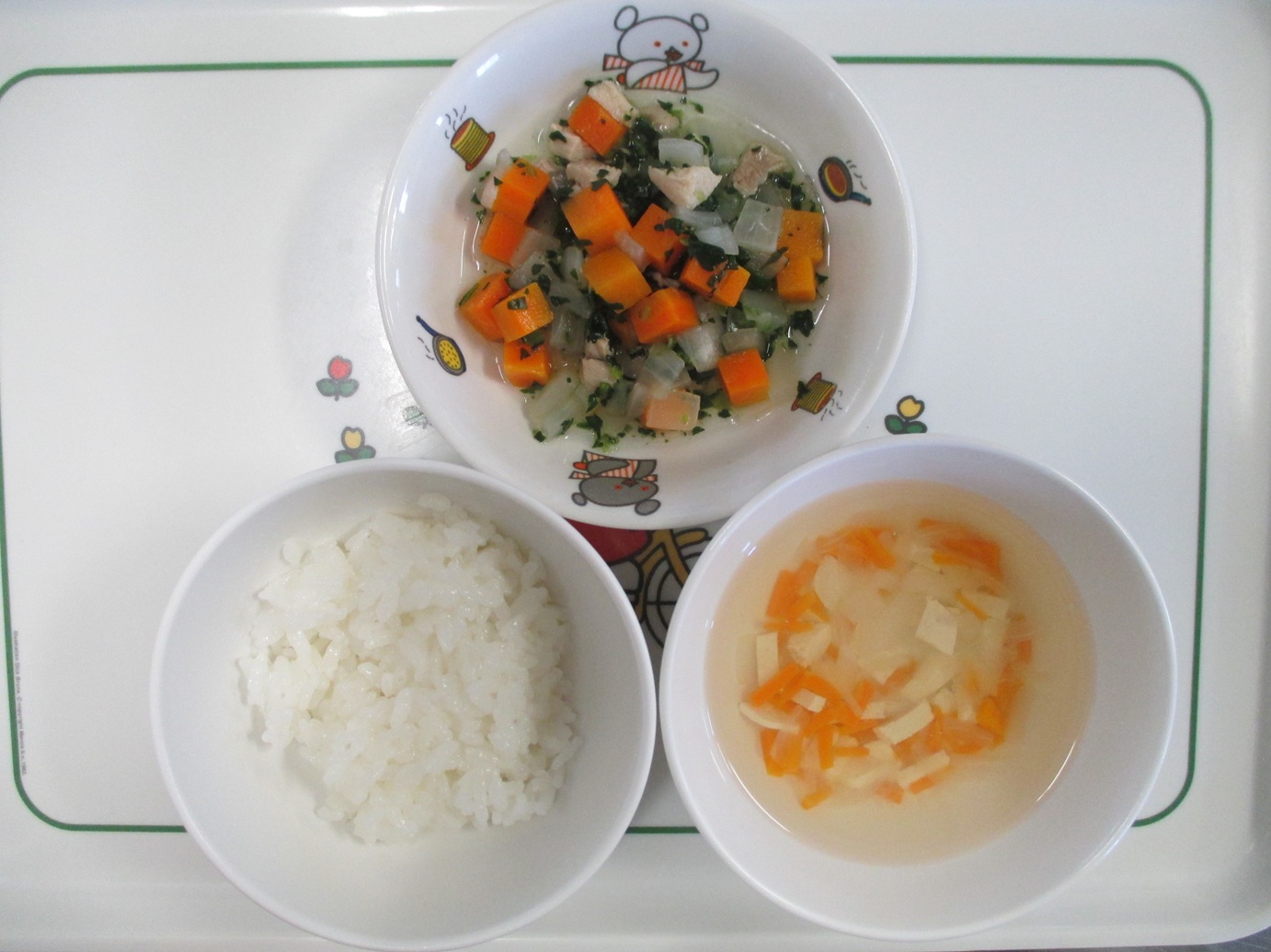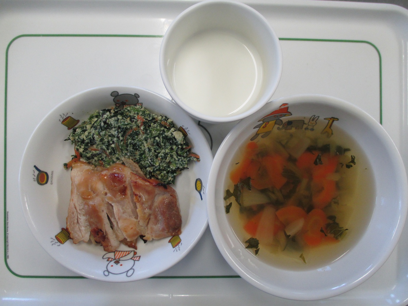 10月14日(火)から10月18日(土)までの給食献立写真・離乳食提供量と写真の一例です。