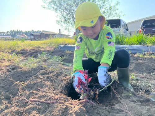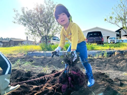 小さな体で精一杯サツマイモを持って見せてくれる子、顔に土を付けながら笑い掛けてくれる子。