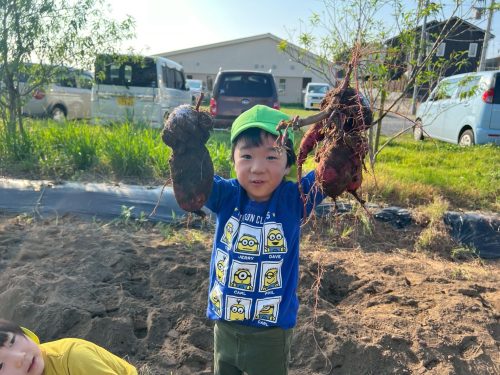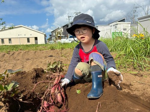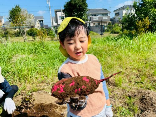 「せんせーい!見て見てー!」と元気いっぱいの声で自分で掘ったサツマイモを見せてくれました。