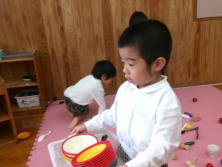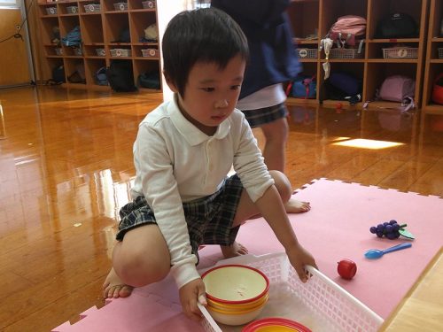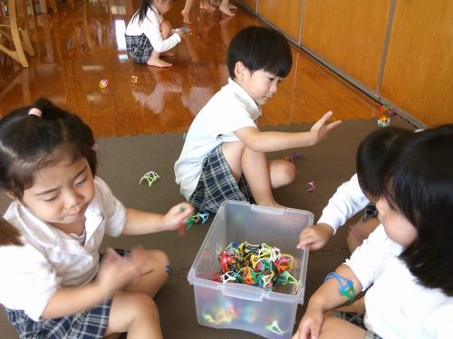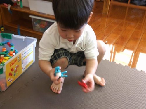 りす組では、自分たちで遊んだおもちゃのお片付けを一生懸命頑張っています。 みんなで時計の針を見て「お片付けだよ。」と言って互いに声を掛け合っている姿が沢山見られるようになってきました。 「先生、あっちのお手伝いもしてくるね。」「たくさんブロック集めたよ。」と片付けに意欲的なりす組さんです。 これからも、みんなで仲良く遊び、最後のお片付けまで楽しく取り組みたいと思います。