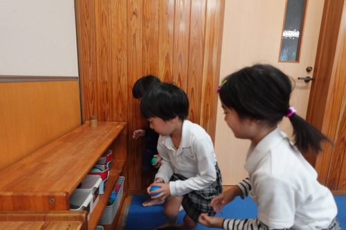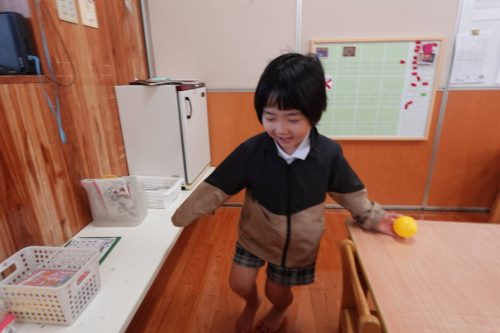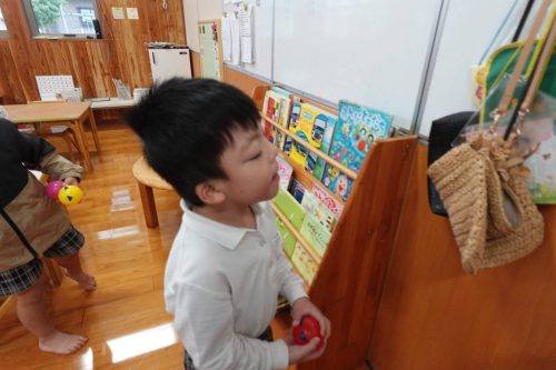 「今日は雨が降ってるね。」と、お外へ出られないことに落ち込んでいるうさぎ組さん。 お部屋を使ってボール探しゲームをしました。 「まだ見ちゃだめだよ!」「どこにあるのかな?」とスタート前から楽しみな子どもたち。 いざ、スタートすると一生懸命探す姿が見られました☆ お友だちと見つけたボールが重なった時には「じゃんけんをしよう。」と自分たちで話し合いながら進めることができました。 終了後には「またしたい!」と、雨で落ち込んでいたことも忘れるくらい楽しい活動になりました♪