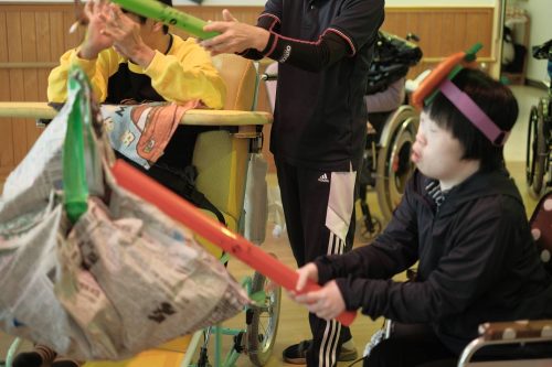皆さん、一生懸命叩いてボールが入った袋を割ることが出来ました。