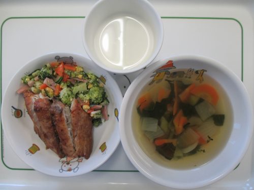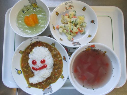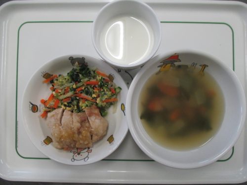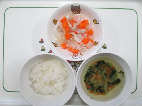 10月27日(月)から11月1日(土)までの給食献立写真・離乳食提供量と写真の一例です。