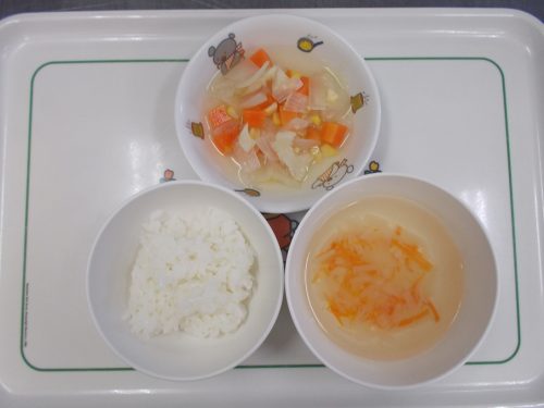 10月27日(月)から11月1日(土)までの給食献立写真・離乳食提供量と写真の一例です。