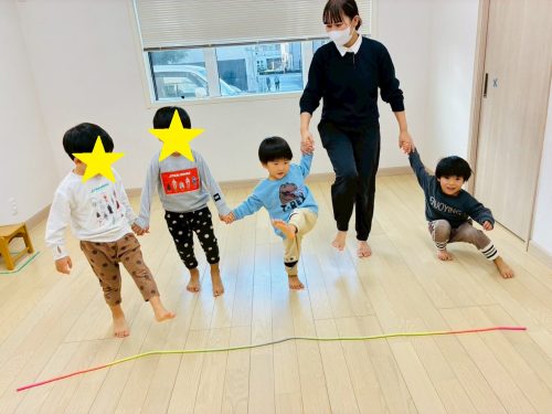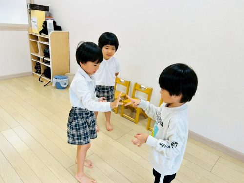 とらグループとぞうグループでは、はないちもんめを行いました。 みんなで手を繋いで、大きな声ではないちもんめを歌う子どもたち! 「誰にする?」と、チームの中で話し合います。 お名前を呼ばれたお友だちで、じゃんけんの勝負!! 見事勝って仲間に引き入れることができると、笑顔で喜びました♪ 負けたお友だちも、「次は頑張るぞ!」と気合を入れて再度取り組みます! 最終的に一つのチームにまとまると、全員で喜びを分かち合いました☆