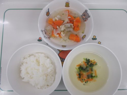 11月10日(月)から11月15日(土)までの給食献立写真・離乳食提供量と写真の一例です。