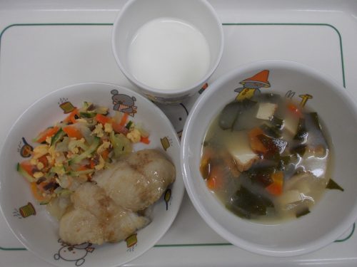 11月10日(月)から11月15日(土)までの給食献立写真・離乳食提供量と写真の一例です。