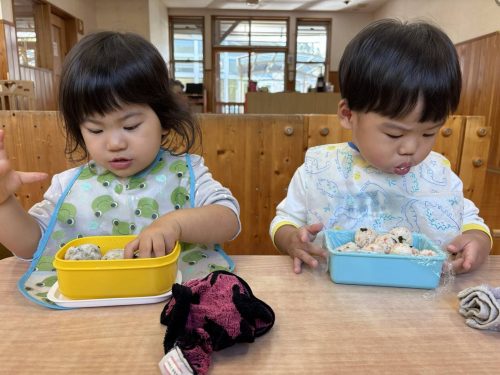 今日は、子どもたちも楽しみにしているおむすびの日です。