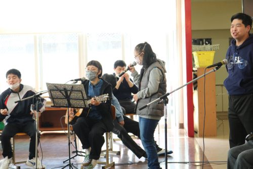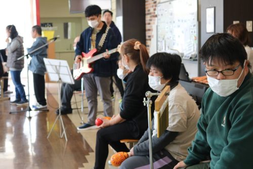 毎週水曜日は「音楽」活動を行っています。 発声練習や合唱、リズム遊びやバンド演奏など皆さんと一緒に楽しみながら 音楽活動を行っております。 本日も皆さんと支援員も一緒に笑顔で合唱、バンド演奏を楽しみました。 歌声や演奏が鳴り響いて気持ちのいい午前の活動でした。