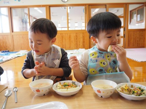 あっという間に食べ終えると、デザートのフルーツポンチおかわりして、「美味しかった!」、「もう食べ終わったよ!」と嬉しそうな子どもたちでした。