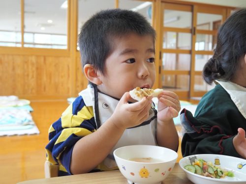 あっという間に食べ終えると、デザートのフルーツポンチおかわりして、「美味しかった!」、「もう食べ終わったよ!」と嬉しそうな子どもたちでした。