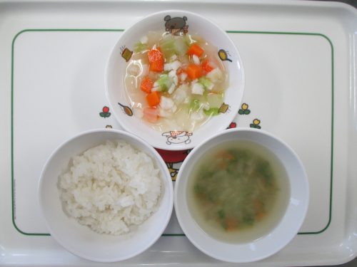 11月17日(月)から11月22日(土)までの給食献立写真・離乳食提供量と写真の一例です。