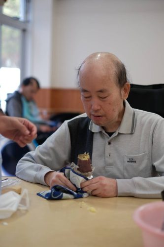 焼き芋ができるまで、皆さんと一緒に日向ぼっこや体操をしてゆっくりとした時間を楽しみました。