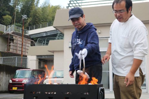 燃え上がる炎の勢いに、たじたじしながら、頑張って火を付けました。