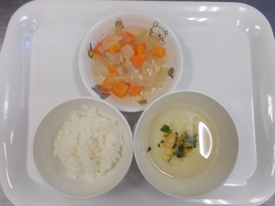 12月15日(月)から12月20日(土)までの給食献立写真・離乳食提供量と写真の一例です。