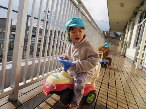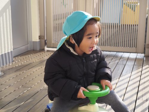 クラクションを鳴らすところに興味を持ち、「これは何に使うの?」と使い方を理解すると「危ないですよ~!」と友だちに当たらないようクラクションを鳴らす姿も見られました。