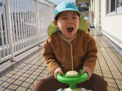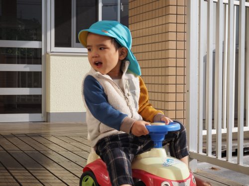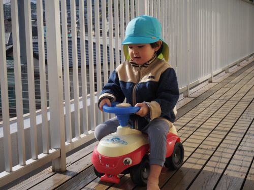 クラクションを鳴らすところに興味を持ち、「これは何に使うの?」と使い方を理解すると「危ないですよ~!」と友だちに当たらないようクラクションを鳴らす姿も見られました。