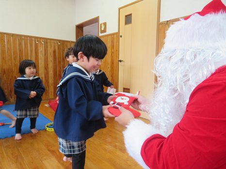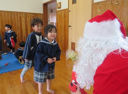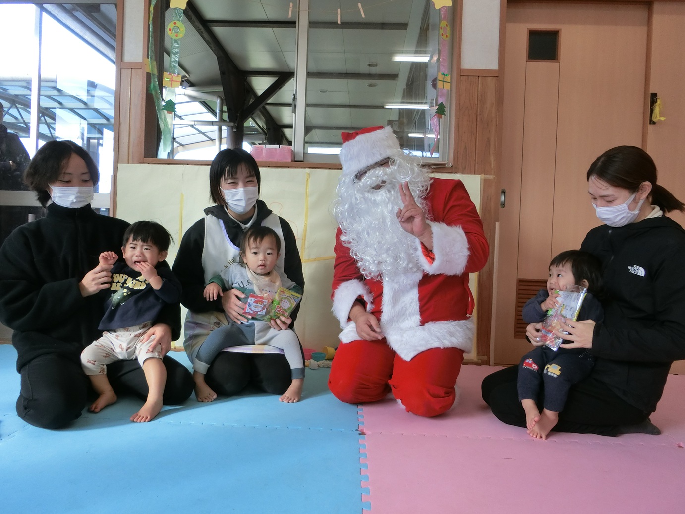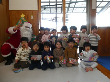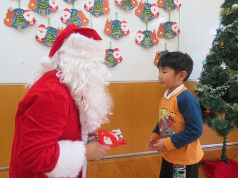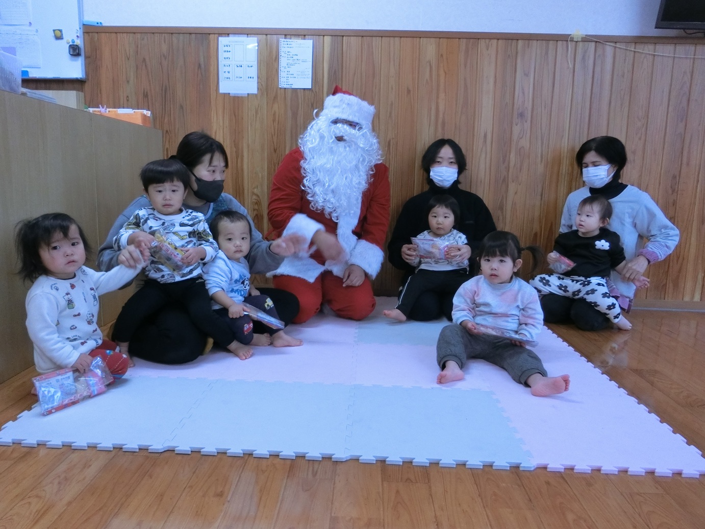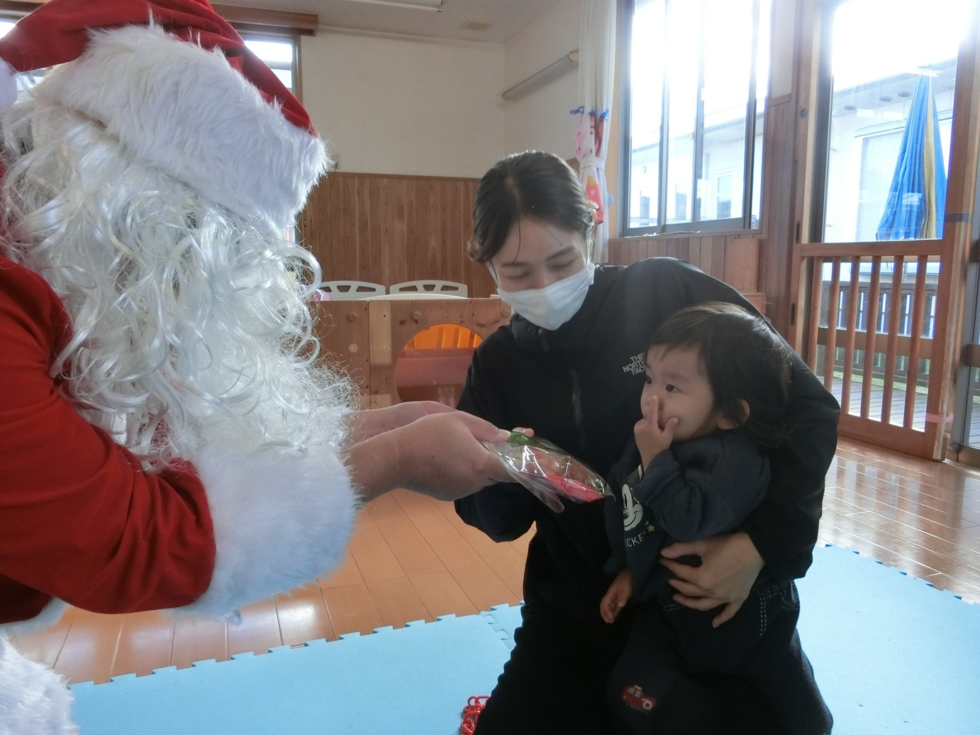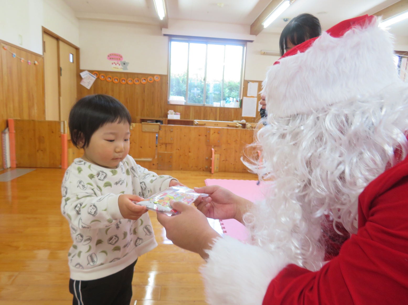 一人ひとりプレゼントをもらったり、ハイタッチをしたりとサンタさんとの交流を楽しんで笑顔がみられました♪
