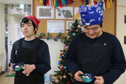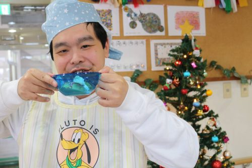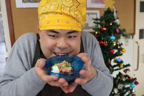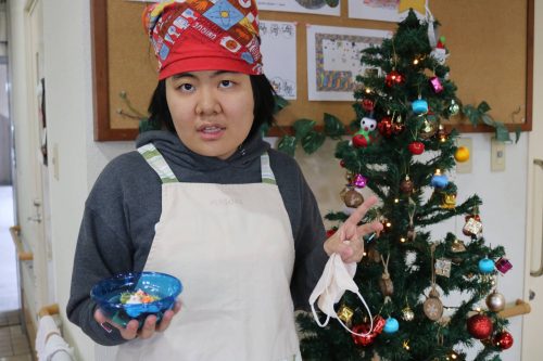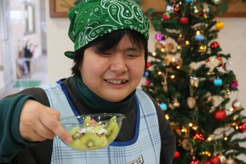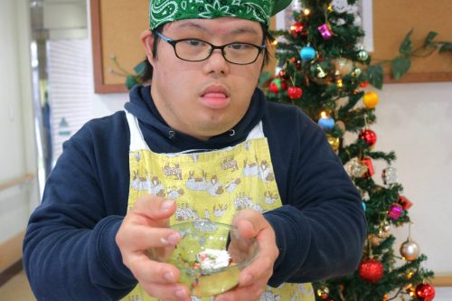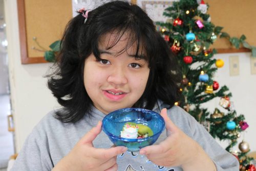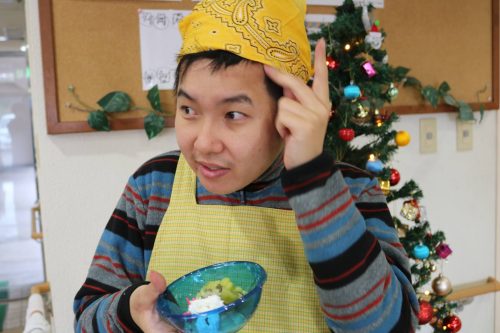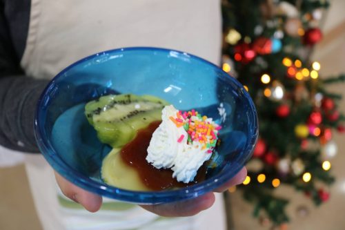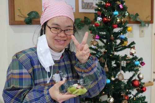 今年のクリスマス会は、いつもと違い、「プリンアラモード」作りを行いました。