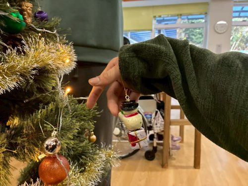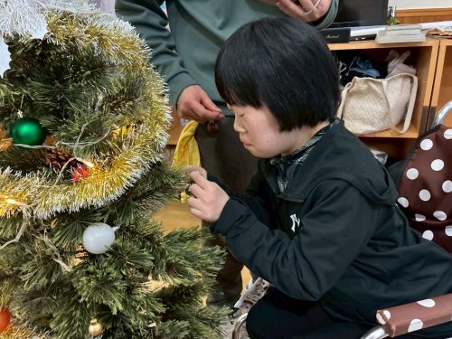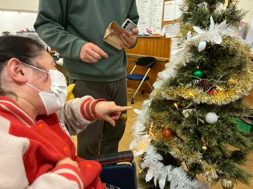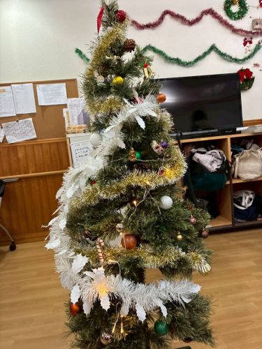 今日は12月25日、クリスマス当日ということで皆さんと一緒にクリスマスツリーのオーナメントを飾り付けました。