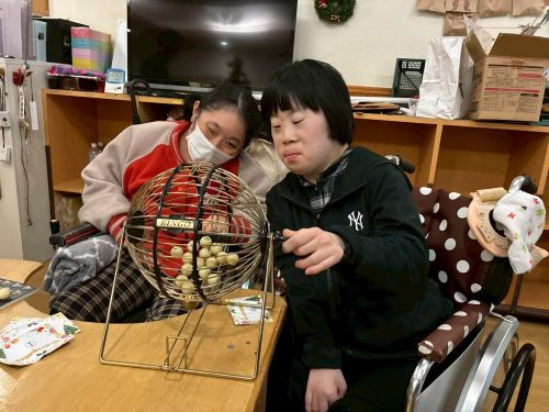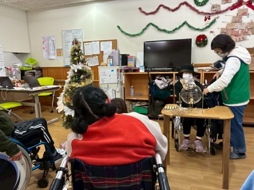一人ずつクリスマスカードを持って、ビンゴに参加してもらいました。