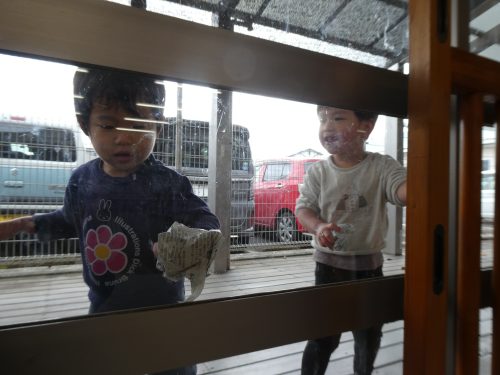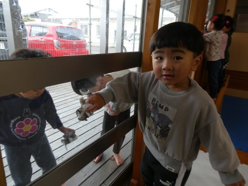 「ぱんだぐみさんのおかげできれいになったね」とお礼を言われたり、「ぴかぴかになったね」と綺麗になったことを自分たちで実感したりして達成感を感じることができていました☆