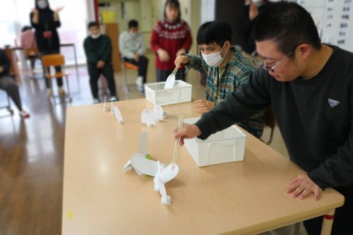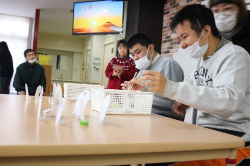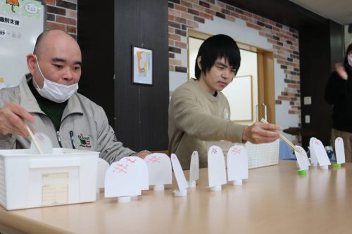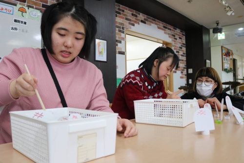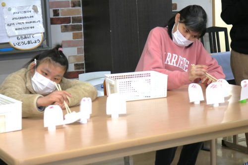 新年あけましておめでとうございます。 2026年もよろしくお願いいたします。 本日から開所日だったきららでは、皆さんと一緒にお正月遊びを行いました。 お餅に見立てたオブジェを箸を使ってカゴに移動させる「おもちゲーム」 真剣な表情や笑顔で丁寧に集中して取り組む姿をみせてくださいました。