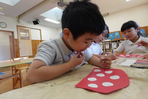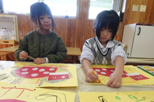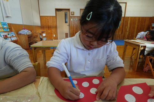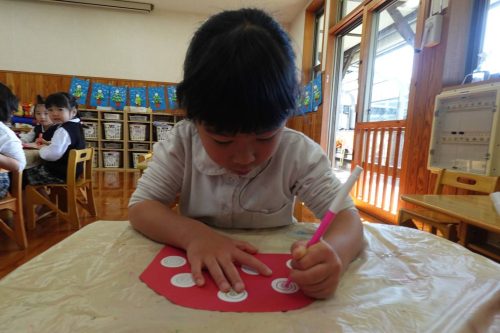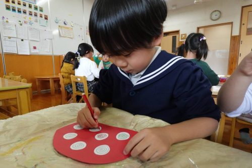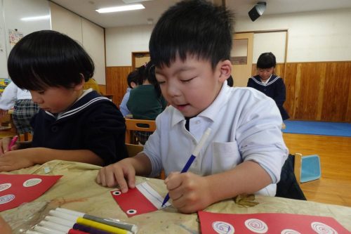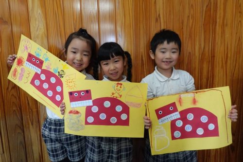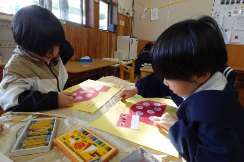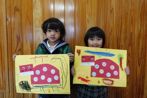 最後はクレヨンで周りにお絵かきをして、自分なりの獅子舞を作ることができました。